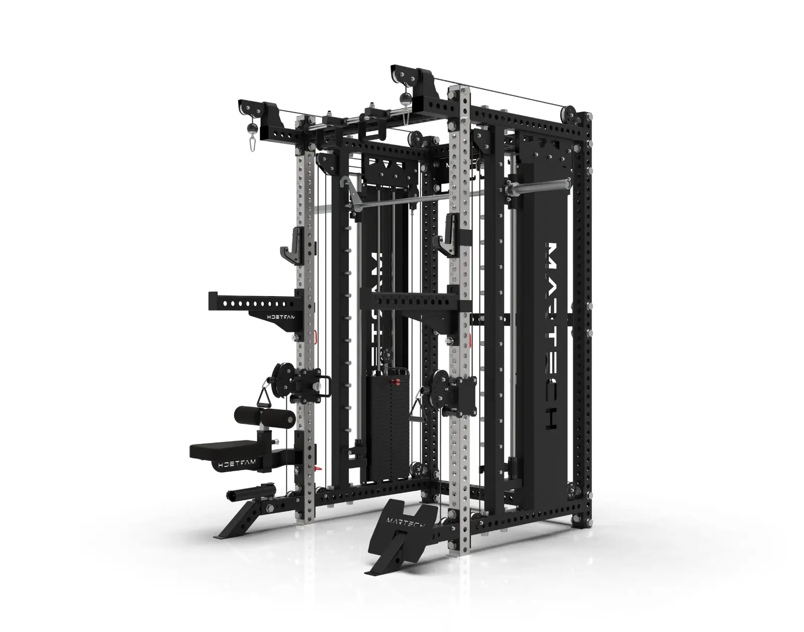 Hotels willen gasten een professional-feel fitnesservaring bieden zonder grote ruimtes of hoge onderhoudskosten. Precies daar scoort de Martech M8 3-in-1: je combineert cable station, Smith machine én (half) power rack in één compact, robuust toestel. Resultaat: maximale oefenvariatie op minimale m², veilig en intuïtief voor uiteenlopende doelgroepen.