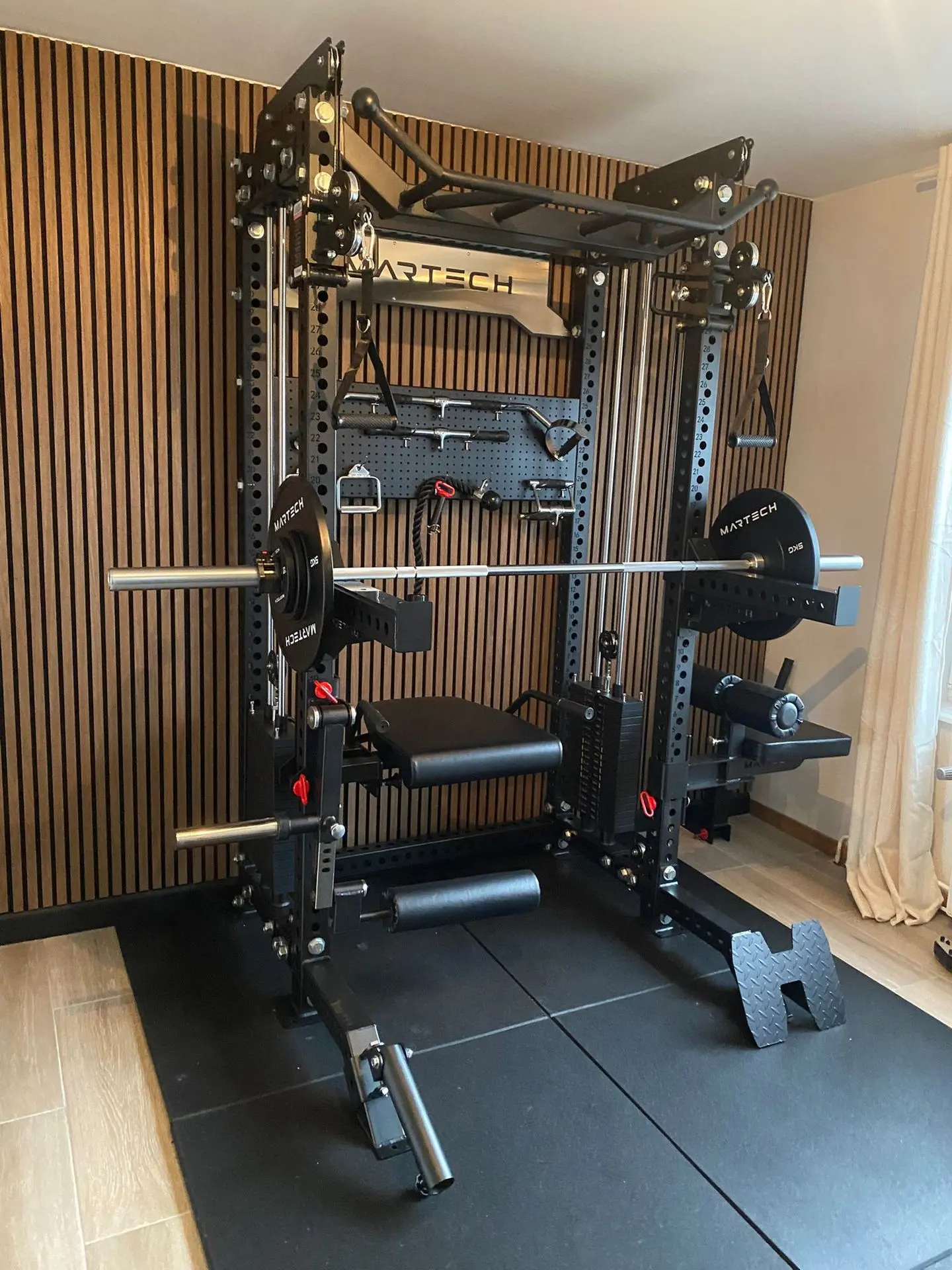 Niet onbelangrijk: je gym moet er ook cool uitzien. De Martech M8 2-in-1 heeft een strak, industrieel design met hoogwaardige afwerking, waardoor hij niet alleen sterk presteert, maar ook perfect past in een moderne homegym of professionele ruimte.