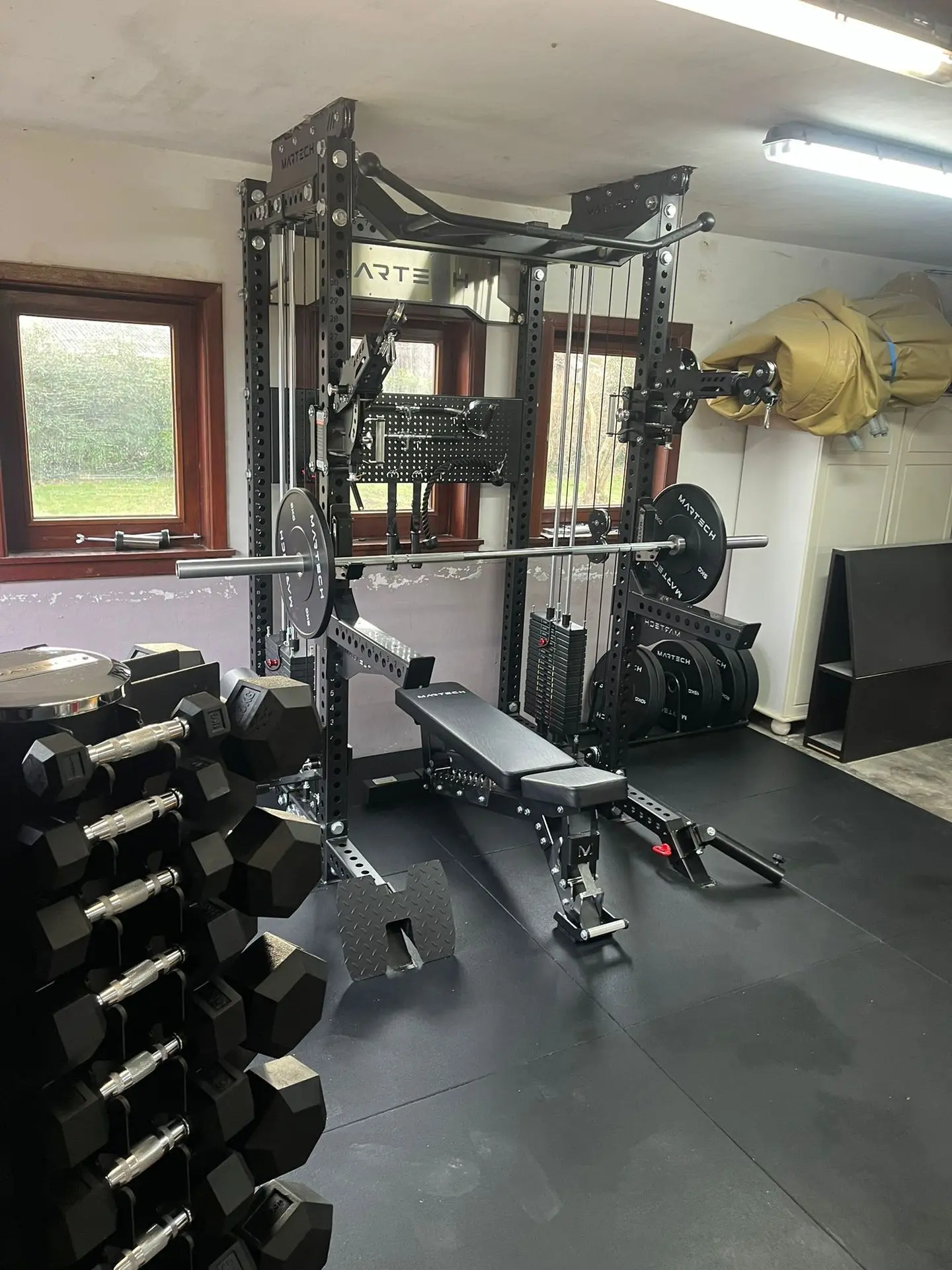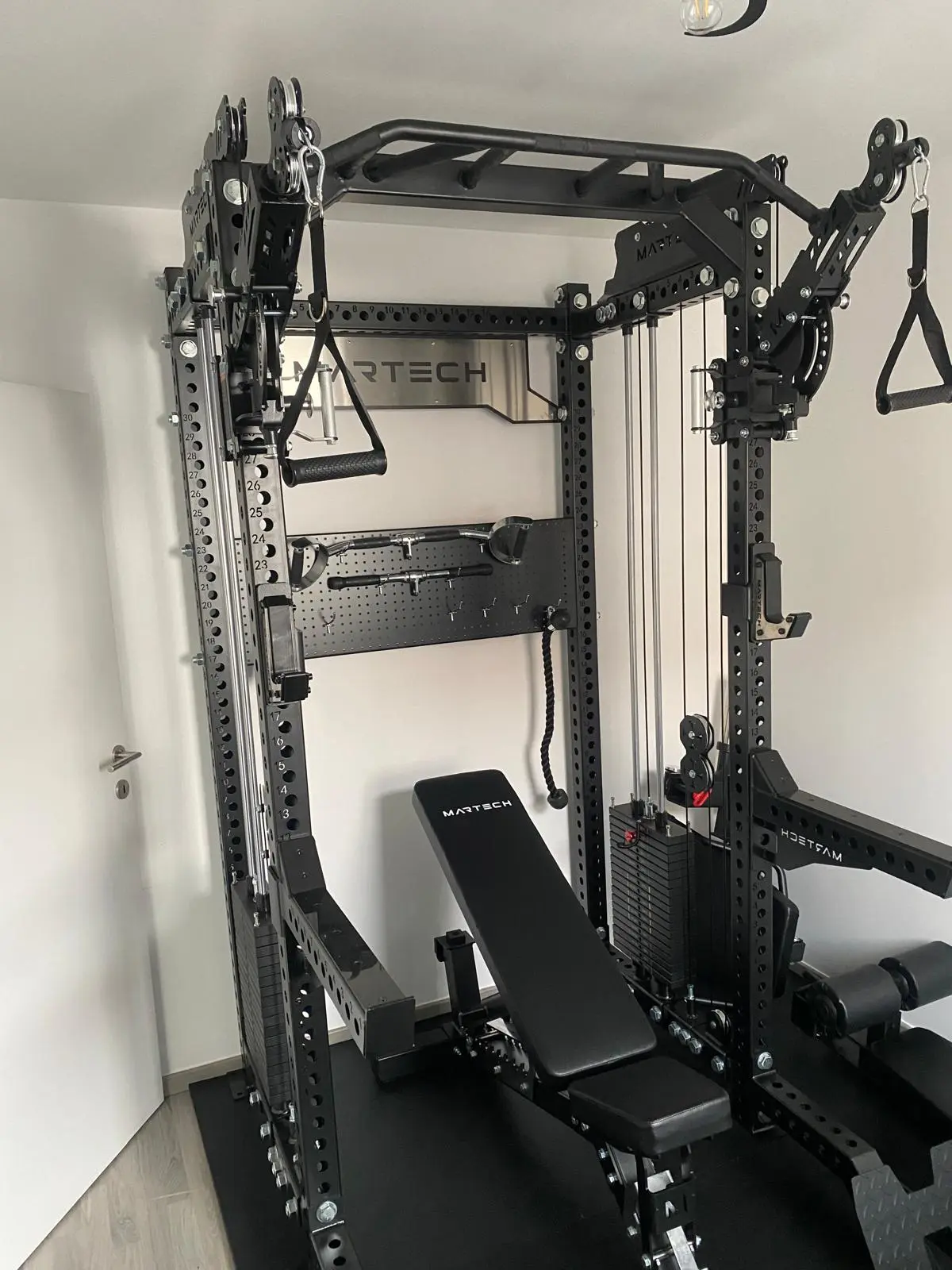 Niet onbelangrijk: je gym moet er ook cool uitzien. De Martech M8 3-in-1 heeft een strak, industrieel design met hoogwaardige afwerking, waardoor hij niet alleen sterk presteert, maar ook perfect past in een moderne homegym of professionele ruimte.