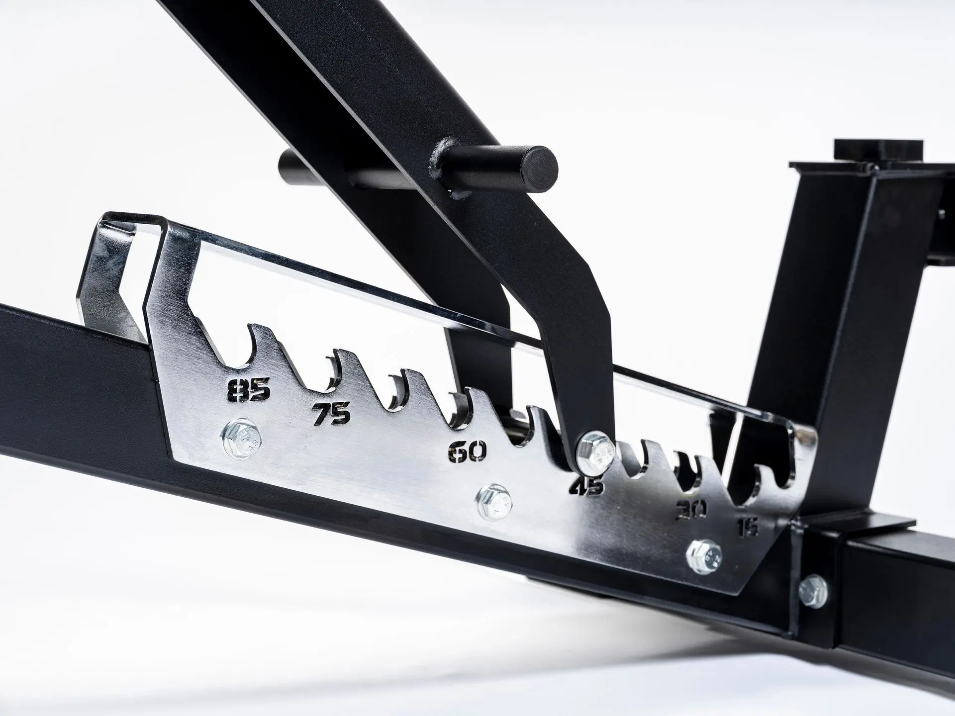 Tot slot is de Martech M8 ook een power rack gemaakt van een stalen frame (75mm x 75mm). De lasergesneden nummering en 30 verschillende uprights langs de voorkant maken het eenvoudig om de spotter arms, J-Cups of andere accessoires naar wens in te stellen. Het rack is getest tot een maximale belasting van 500 kg, zowel op de J-Cups als de Spotter Arms, waardoor het ideaal is voor onder andere zware squats en bench presses.