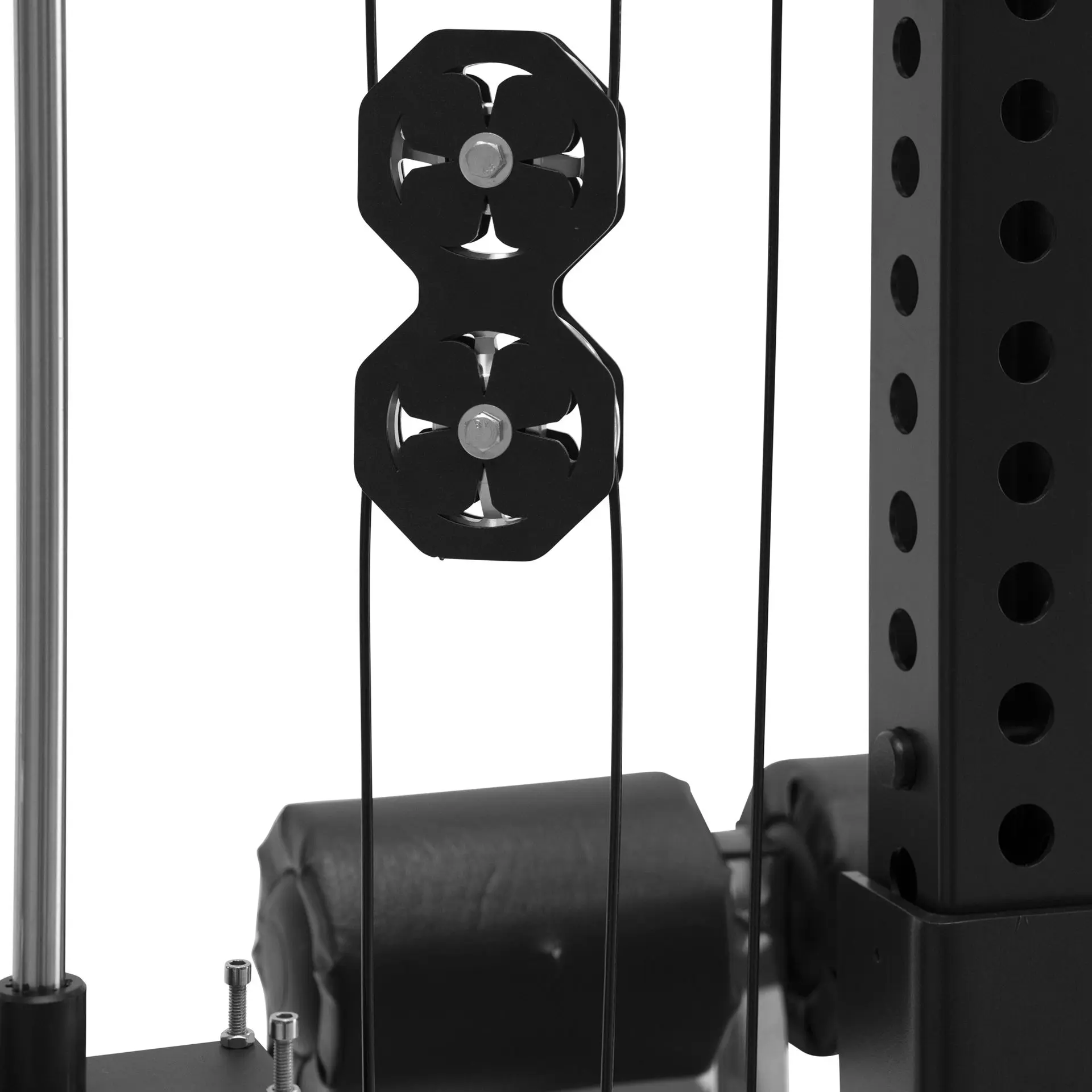 Dankzij het unieke design is er gebruikgemaakt van aluminium katrolwielen, deze zorgen voor een soepele en stille beweging en zijn naar de toekomst duurzamer dan veel plastic varianten. De stalen kabels zijn 3 mm dik, van commerciële kwaliteit en hebben een hoge trekweerstand getest tot 750KG. Op alle bewegende onderdelen zit er 3 jaar garantie. De kabelratio van dit toestel is 1:1 wat betekent dat 90KG ook echt 90kg is.