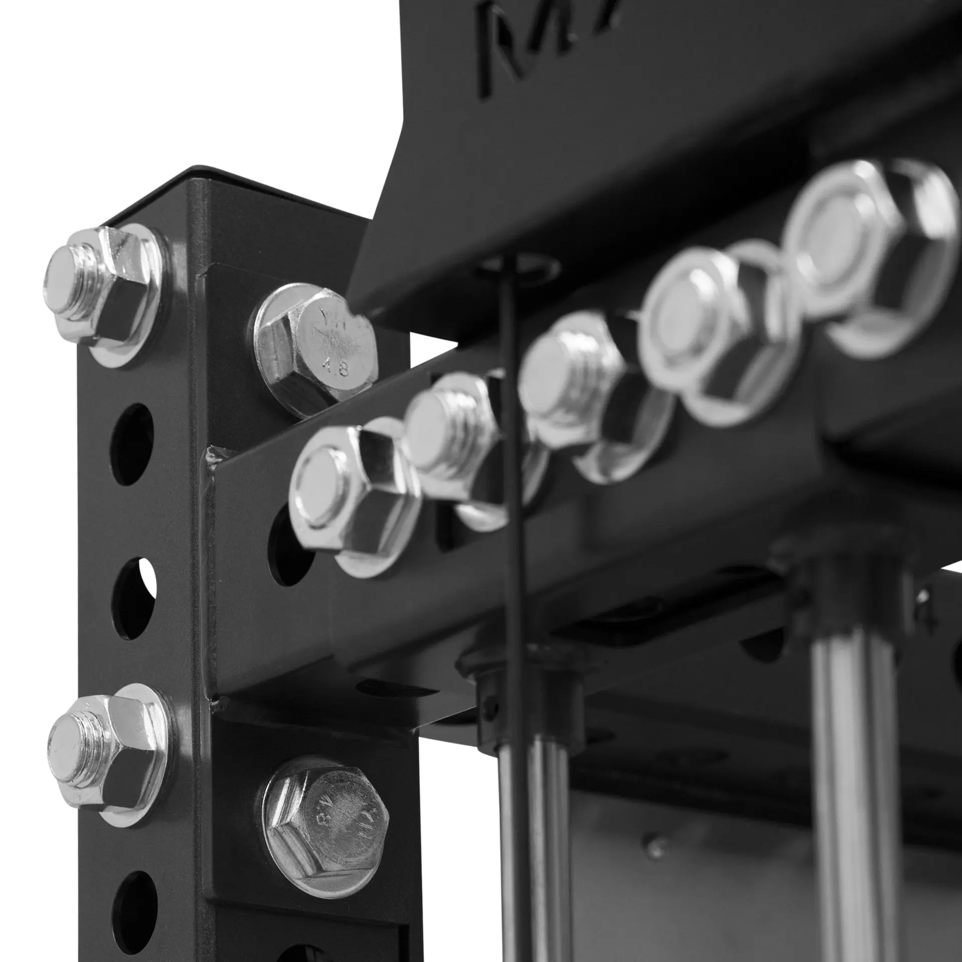 Met een maximale belasting van 500 kg op de J-hooks en spotter arms biedt de M8 absolute veiligheid bij zware compound lifts.