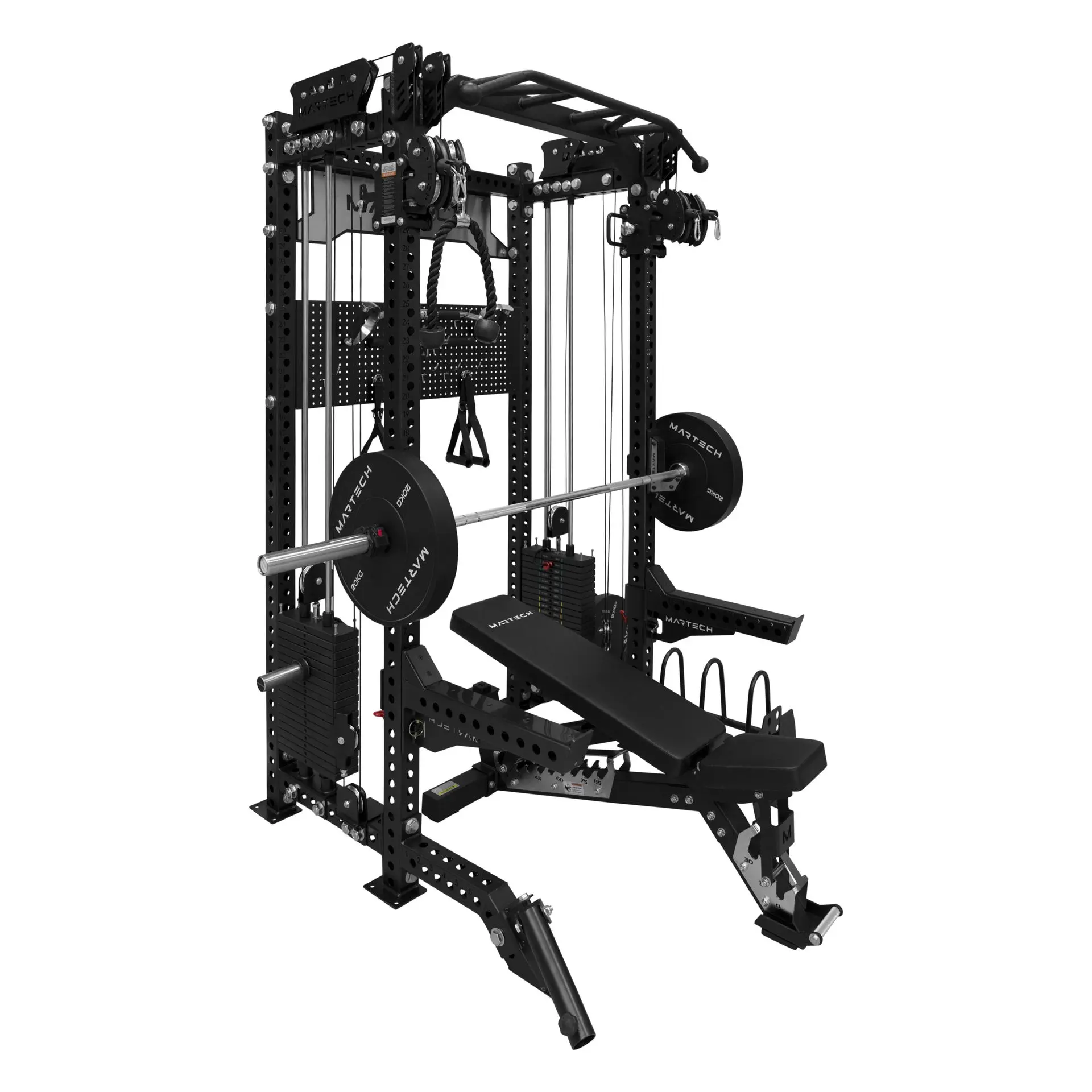 Niet onbelangrijk: je gym moet er ook cool uitzien. De Martech M8 2-in-1 heeft een strak, industrieel design met hoogwaardige afwerking, waardoor hij niet alleen sterk presteert, maar ook perfect past in een moderne homegym of professionele ruimte.