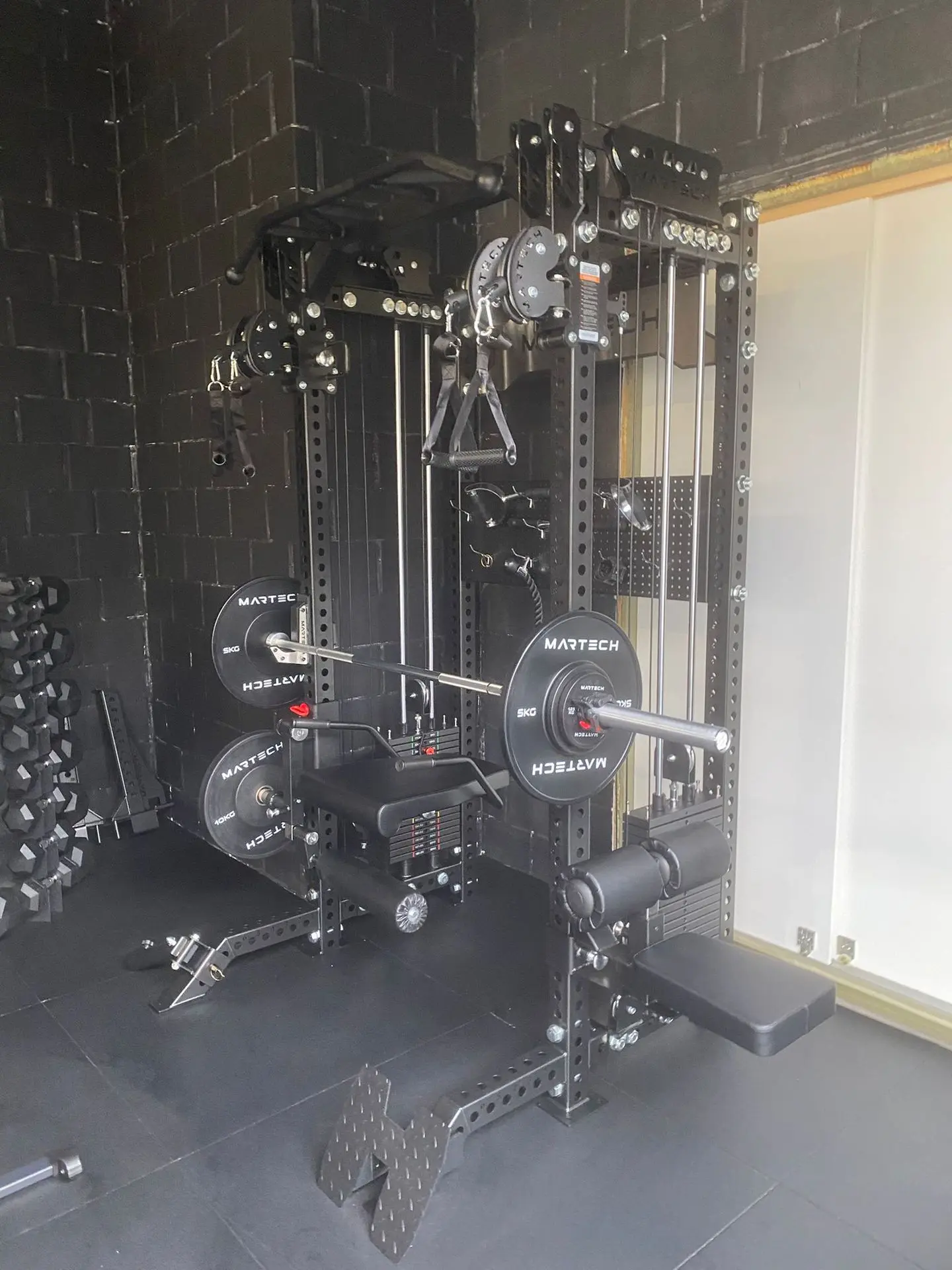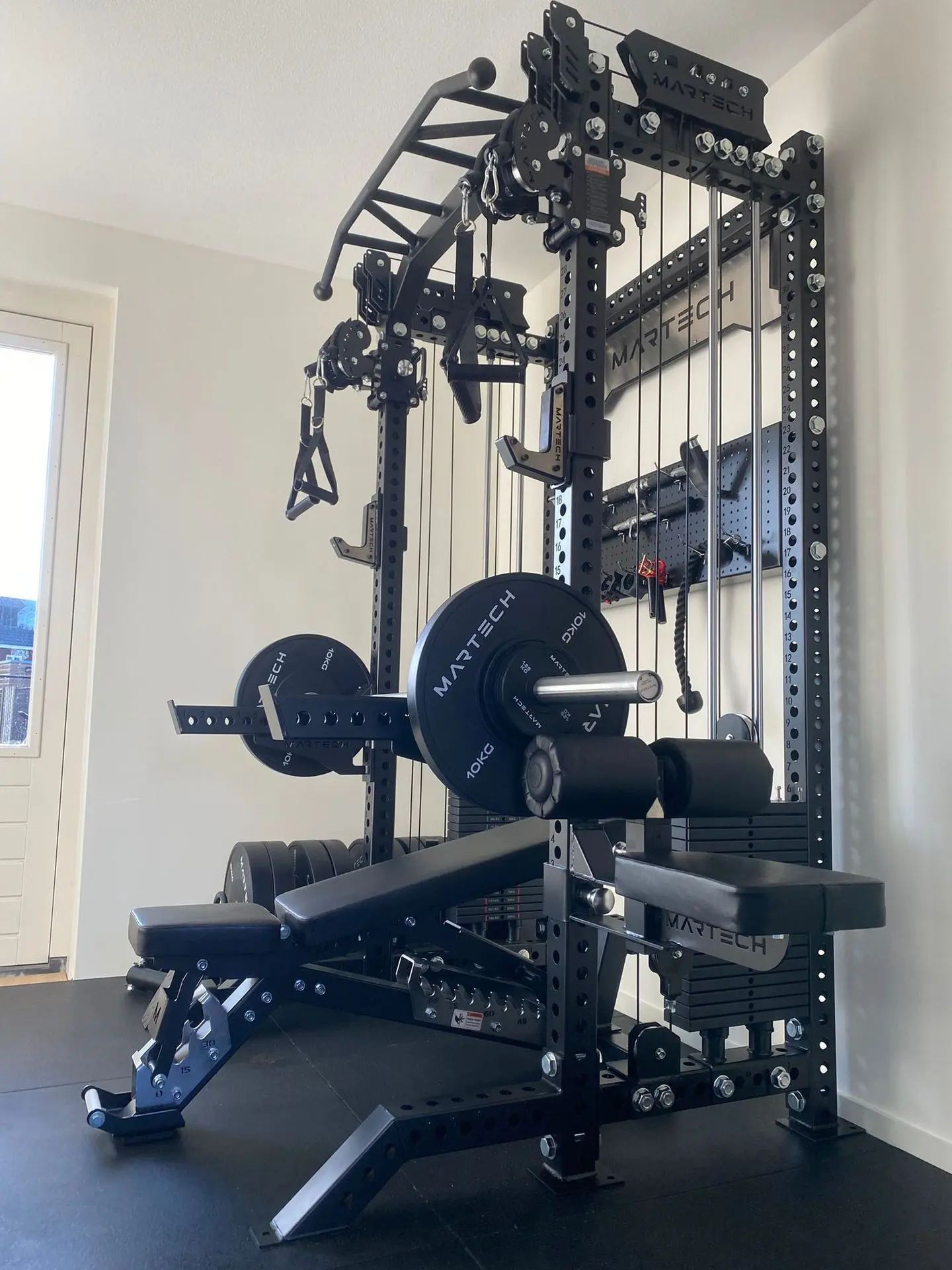 Niet onbelangrijk: je gym moet er ook cool uitzien. De Martech M8 2-in-1 heeft een strak, industrieel design met hoogwaardige afwerking, waardoor hij niet alleen sterk presteert, maar ook perfect past in een moderne homegym of professionele ruimte.